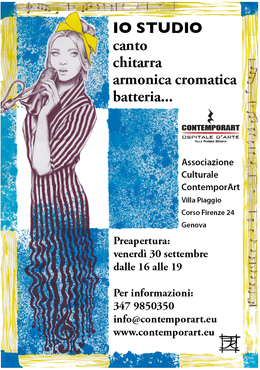 Venerdì 30 settembre, a Villa Piaggio presso l’Associazione Culturale ContemporArt, dalle 16 alle 19, Anna Sini, Enrico Testa e Daviano Rotella, inaugureranno la scuola di musica IO STUDIO.